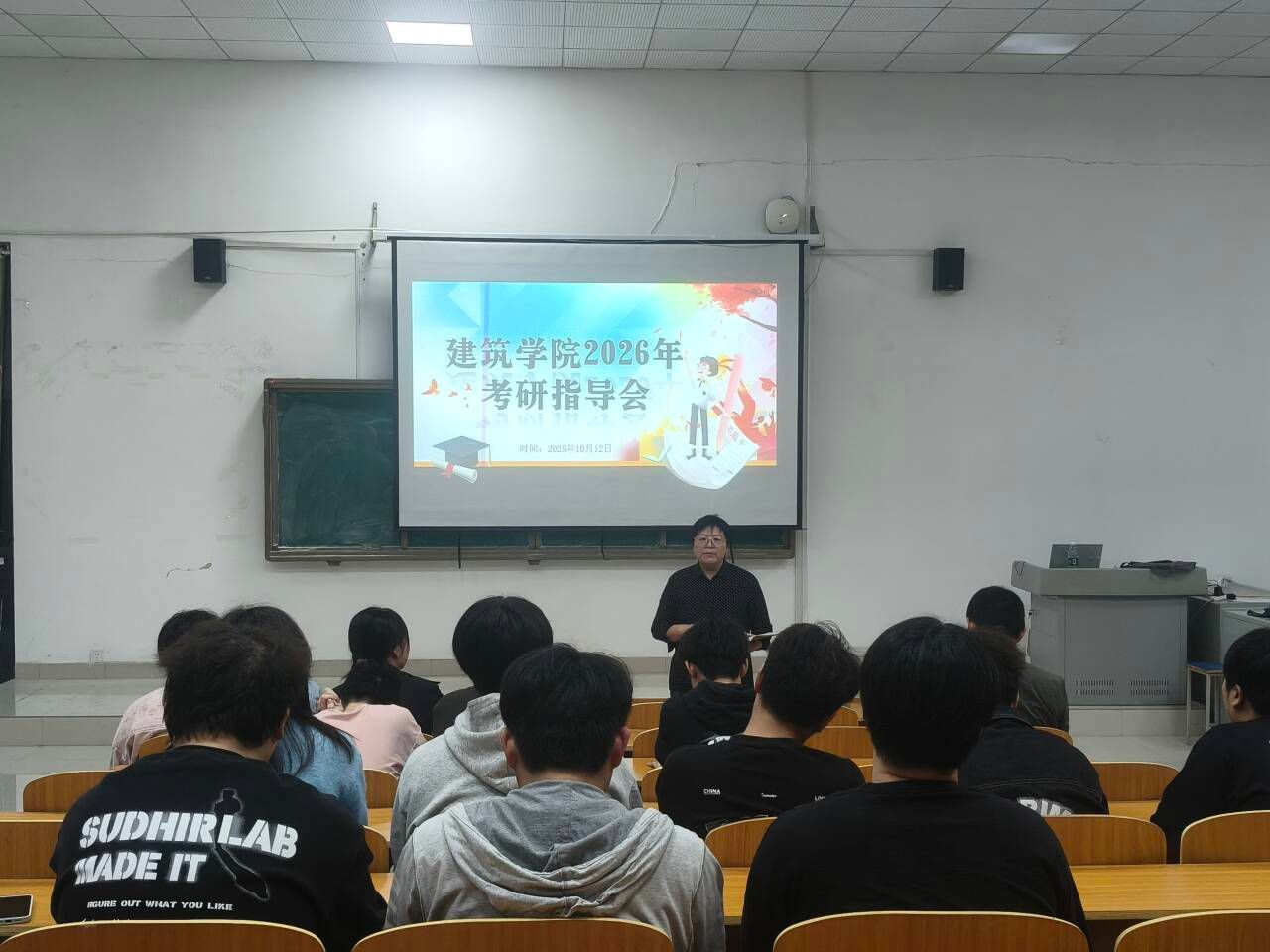为帮助考研学生深入了解考研形势,进一步坚定备考信心,10月12日下午,建筑学院在敏C102教室举办2026届毕业生考研指导会,拟报考2026年硕士研究生的学生参加。会议由学院党委副书记谢宜勤主持,学院副院长张伟主讲。