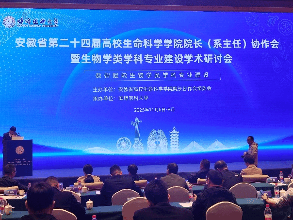 11月6日至8日,安徽省第二十四届高校生命科学学院院长(系主任)协作会暨生物学科建设学术研讨会在蚌埠医科大学举行。生物医学与健康学院党委副书记、副院长(主持工作)钱立生教授带队,副院长周成、生物工程教研室主任苗永美、中药学教研室主任周丽丽及青年教师孟奇博士同行参加本次盛会,与来自全省20余所高校的百余名专家学者齐聚一堂,共商生物学科发展大计。