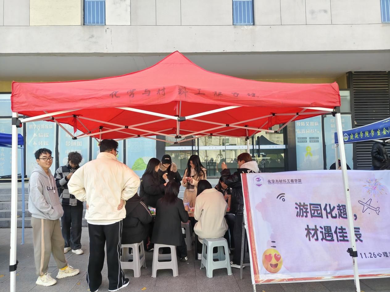 11月26日下午,化学与材料工程学院在龙湖校区“一站式”学生社区东侧广场成功举办“游园化趣,材遇佳辰”心理游园会活动,与此同时易班“烦恼漂流瓶”线上主题活动也同步进行。