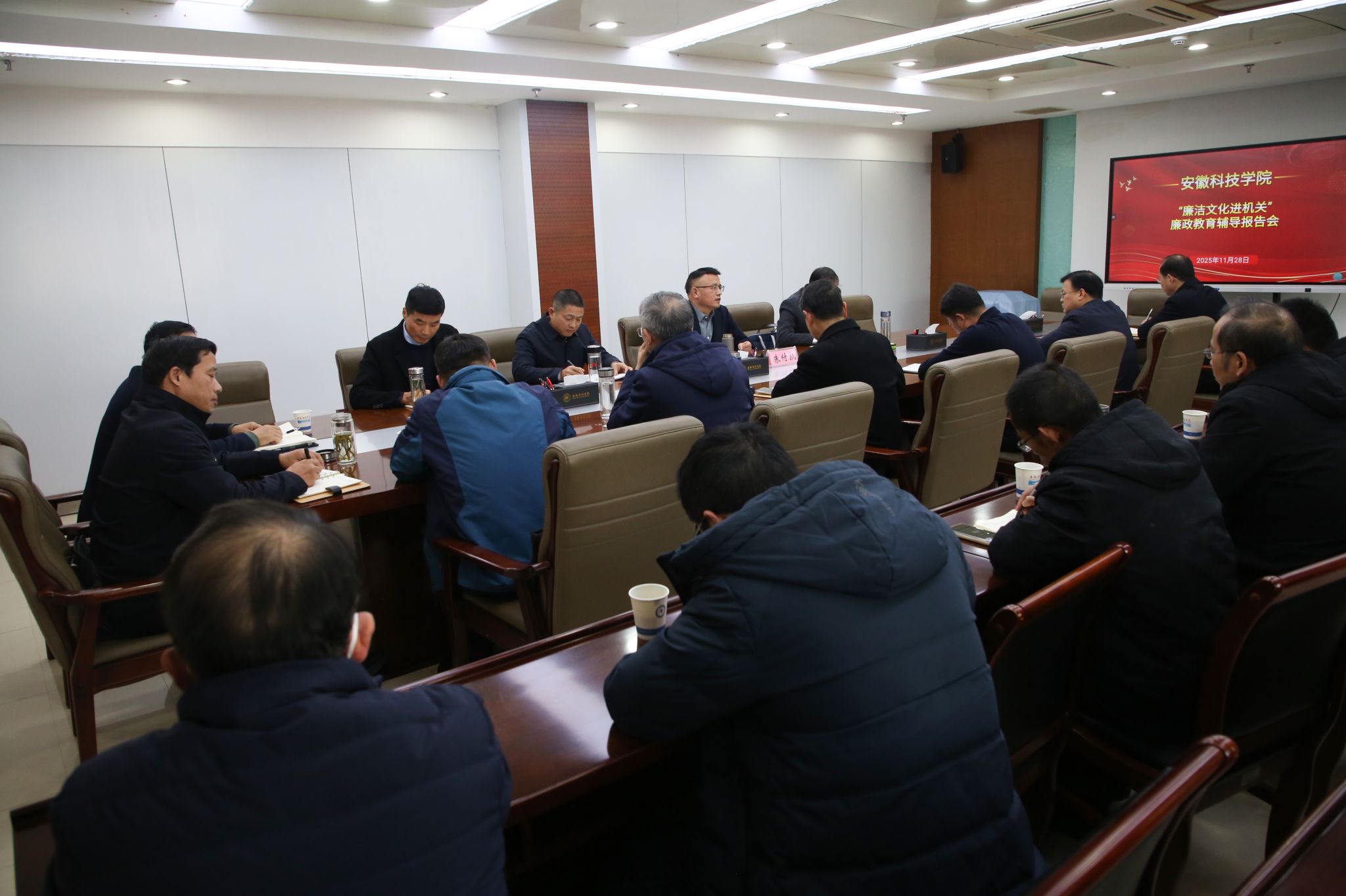 11月28日下午,蚌埠市纪委常委、组织部部长朱付凯应邀来大棋牌作“廉洁文化进机关”专题辅导报告。报告重点围绕新时代全面从严治党形势与任务,党的作风建设、纪律建设等方面展开。校纪委委员、机关纪委书记、审计处处长朱立政主持报告会。
