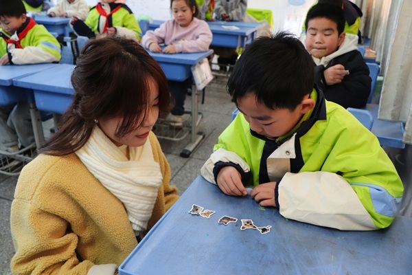 支教课堂上,志愿者老师以趣味提问拉开序幕:“啄木鸟为什么是‘森林医生’?”“蜜蜂消失会影响我们的生活吗?”孩子们踊跃举手,积极互动。回答正确的小朋友还获得了支教团精心准备的动物小贴纸,现场气氛活跃,同学们充满热情。