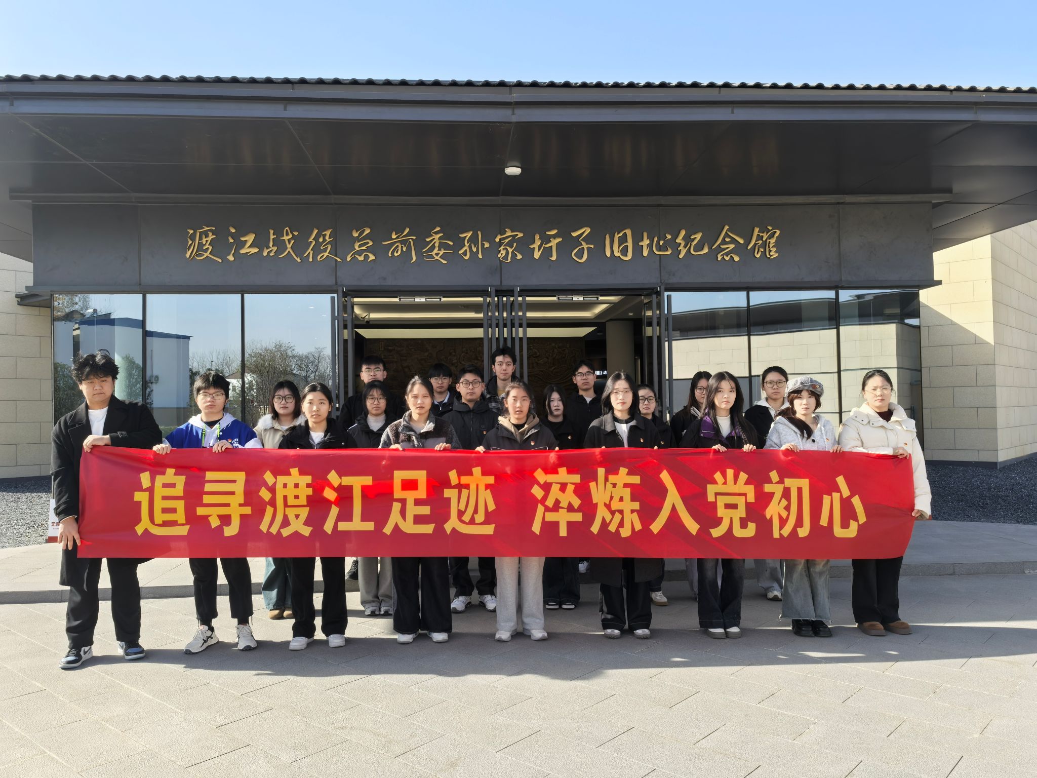 为深入推进学院学生党建工作,用好身边红色资源强化党性教育,11月28日上午,管理学院组织学生党支部书记及21名新发展学生党员,赴渡江战役总前委孙家圩子旧址,开展 “追寻渡江足迹 淬炼入党初心”主题党日活动,引导青年党员从革命历史中汲取信仰力量。