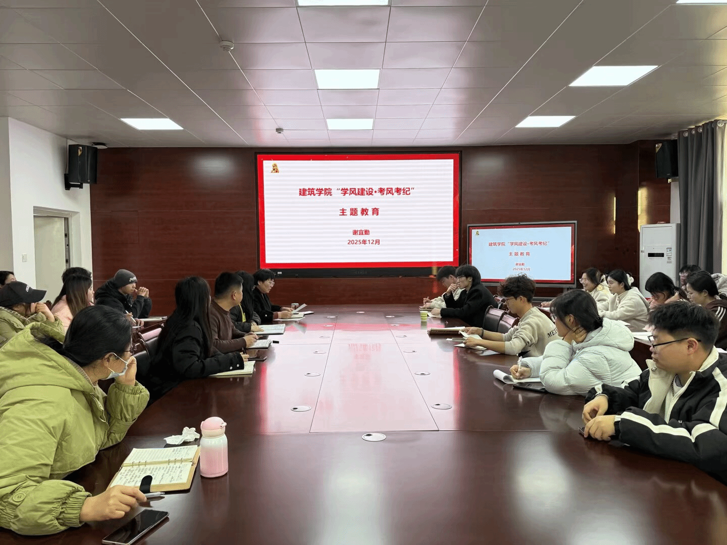 为进一步加强学风建设,严肃考风考纪,12月17日下午,建筑学院在尚行楼A301召开“学风建设?考风考纪”主题教育。学院党委副书记谢宜勤,学院有关教师、部分班级学生干部和学生会成员参加会议。