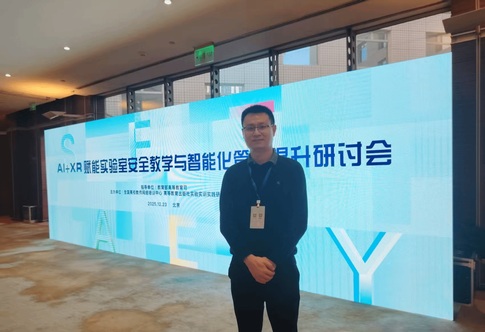 为深入贯彻落实国家教育数字化、智能化转型战略,探索新技术与实验教学深度融合路径,12月23日,由全国高校教师网络培训中心主办的AI+XR赋能实验室安全教学与智能化管理提升研讨会在北京举办。化学与材料工程学院副院长叶龙强教授受邀参加此次研讨会。
