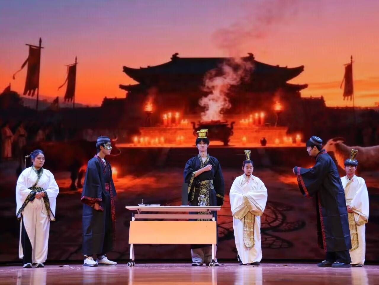 作为学院法律文化节的核心项目与《中国法制史》翻转课堂教改成果汇报,此次历史剧翻转课堂展演由法学系副主任田野博士策划指导,2025级法学专业全体学生自编自导自演完成。为呈现最优效果,创作团队历经5次剧本打磨、6次全流程联排,精雕细琢每一个历史细节、每一句台词表达。演出过程中,同学们跳出“课本+板书”的传统学习模式,化身历史人物深度代入经典情境,将专业法理思考融入角色演绎,在举手投足间诠释法治理念的传承与演进,形成“演中学、学中思、思中悟”的良性学习闭环,充分展现了新时代法学专业学生的专业素养与创作活力。