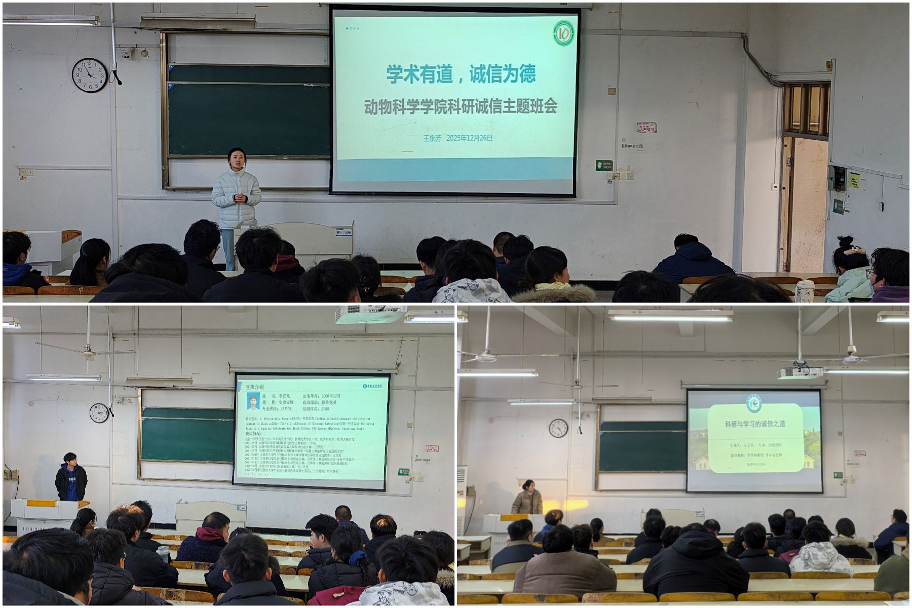 为深入贯彻国家关于加强科研诚信、作风学风及科技伦理建设的系列重要部署,全面落实《高等学校预防与处理学术不端行为办法》等文件精神,近日,动物科学学院组织开展了一系列形式多样、内容丰富的主题教育与分享活动,旨在引导广大研究生和导师坚守学术道德底线,弘扬科学家精神,系好学术生涯的“第一粒扣子”。