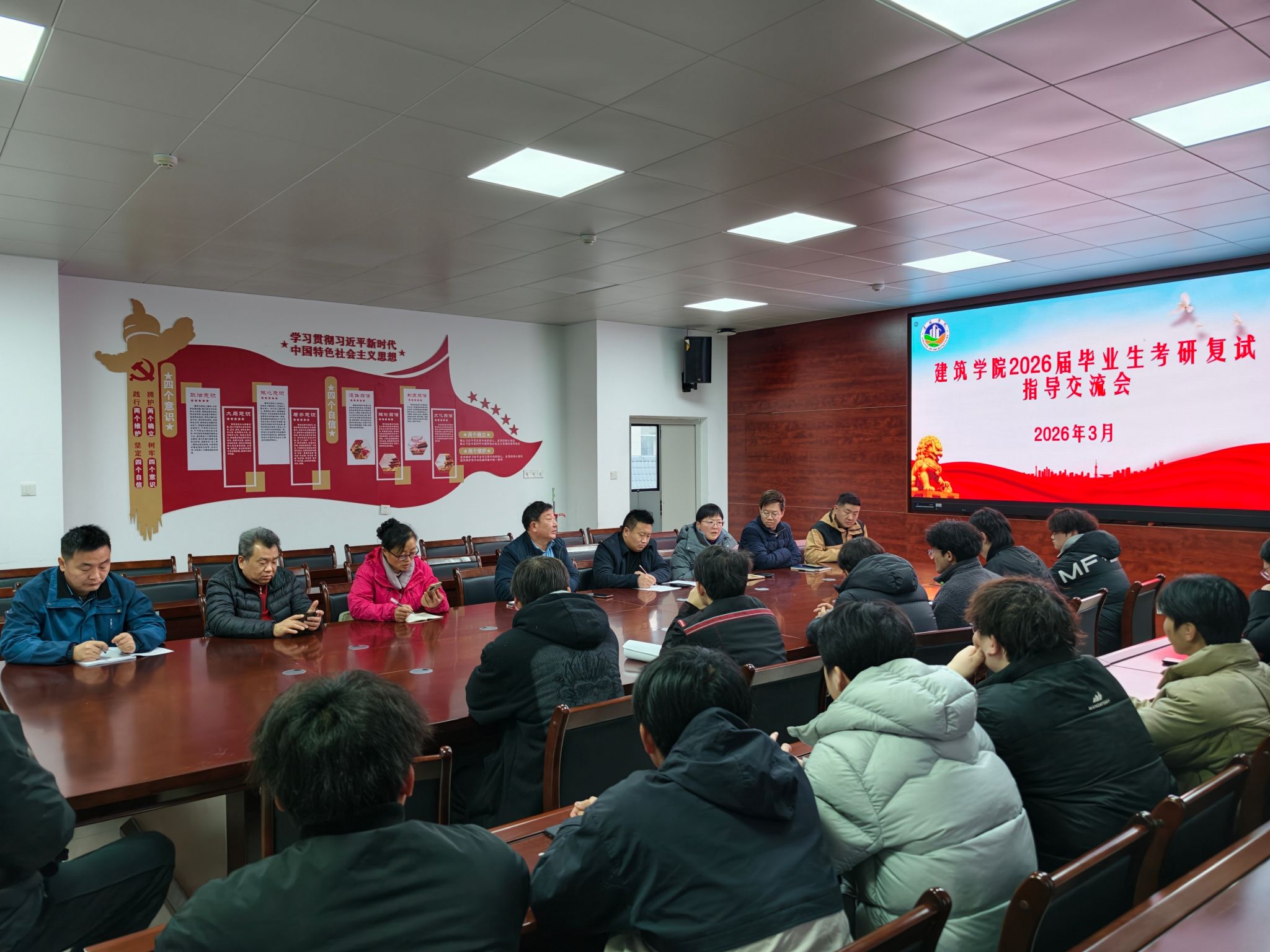 为搭建师生学习交流平台,助力考研学子复试成功。3月17日下午,建筑学院在尚A301召开2026届毕业生考研复试指导交流会。学院党政领导、各教研室老师、毕业班辅导员及2026届考研学生参加本次会议。会议由学院党委副书记谢宜勤主持。