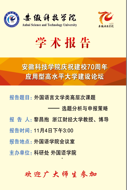 庆祝建校70周年学术报告--外国语言文学类高层次课题:选题分析与申报策略