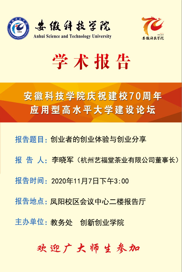 庆祝建校70周年学术报告--创业者的创业体验与创业分享