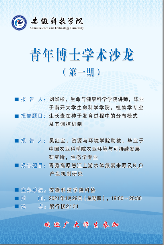 安徽科技学院青年博士学术沙龙(第一期)