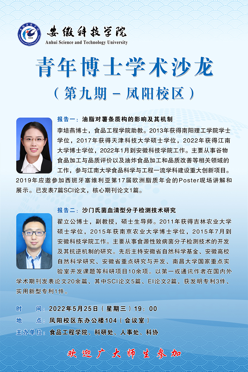 校学术系列报告——青年博士学术沙龙(第九期—凤阳校区)