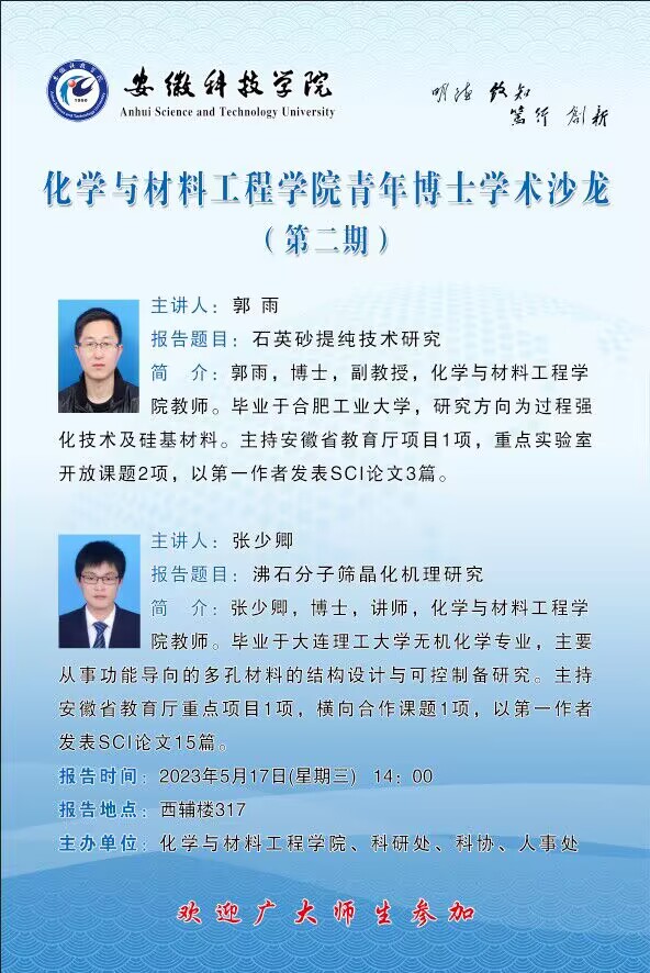 校学术系列报告——青年博士学术沙龙(化材学院第二期)