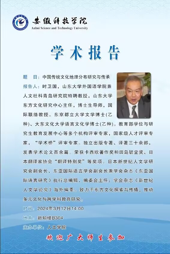 时卫国教授学术报告-中国传统文化地理分布研究与传承