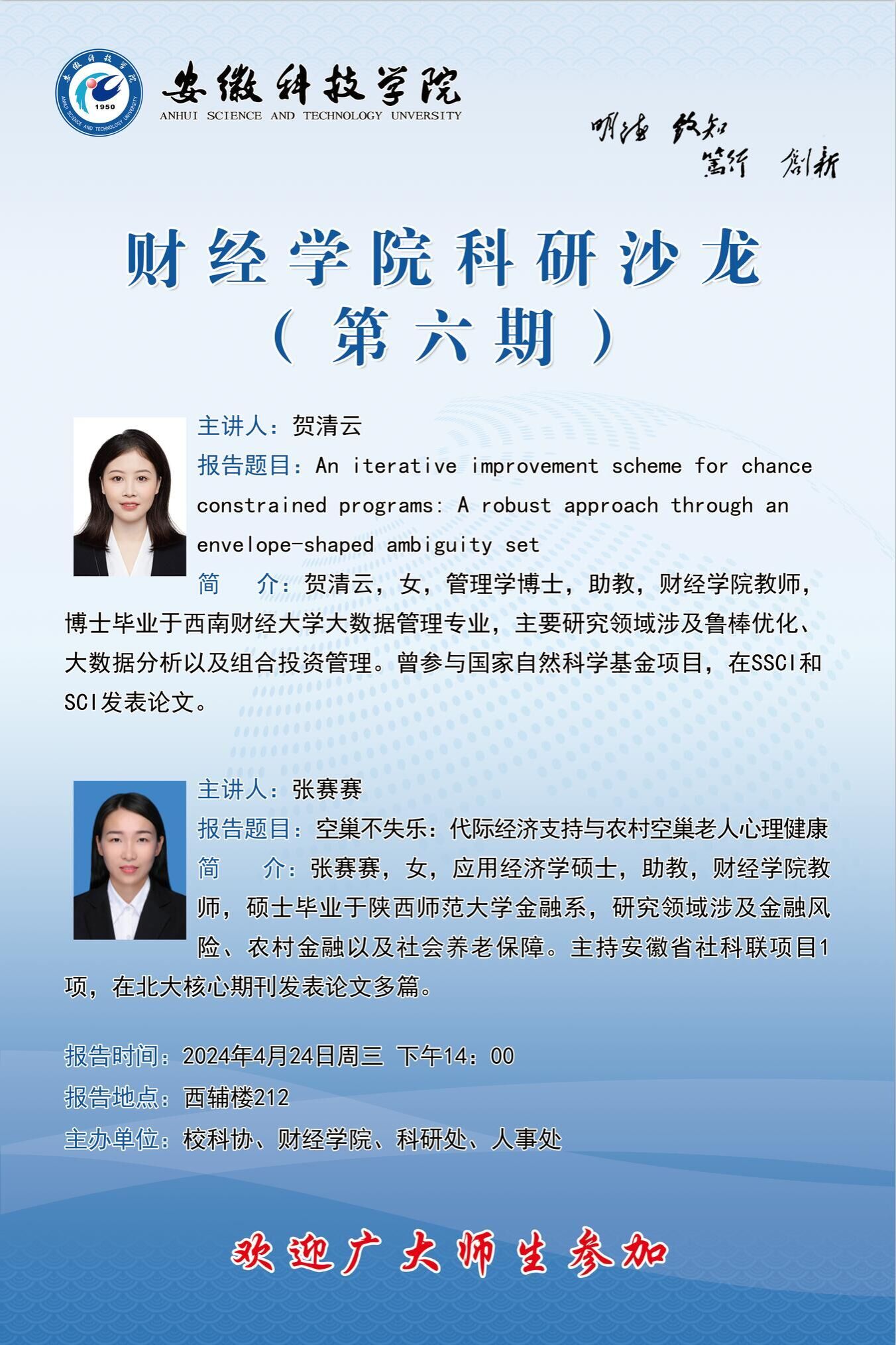 校学术系列报告——青年博士学术沙龙-贺清云、张赛赛