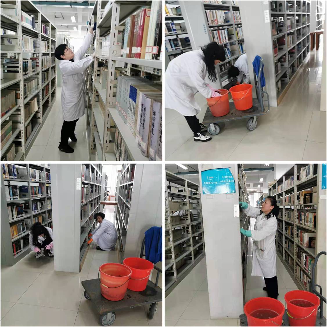 流通部主任刘传燕感慨到:“看着宽敞明亮干净整洁的借阅环境,心里也跟着明亮起来,这种舒服的感受是图书馆人用辛勤的汗水换来的。虽说图书馆里女同志居多,但她们做起力气活来一点都不含糊,比如搬运图书、图书倒架、这些看似简单的工作其实非常不易,一会儿踮脚,一会儿下蹲的,手中还拿着一摞摞沉甸甸待上架的图书,经常会让人感到头晕目眩,但是她们从来都是任劳任怨。尤其是党员同志更是冲在前,干在先,用实际行动践行着图书馆服务育人的理念,她们是图书馆最可爱的人!”