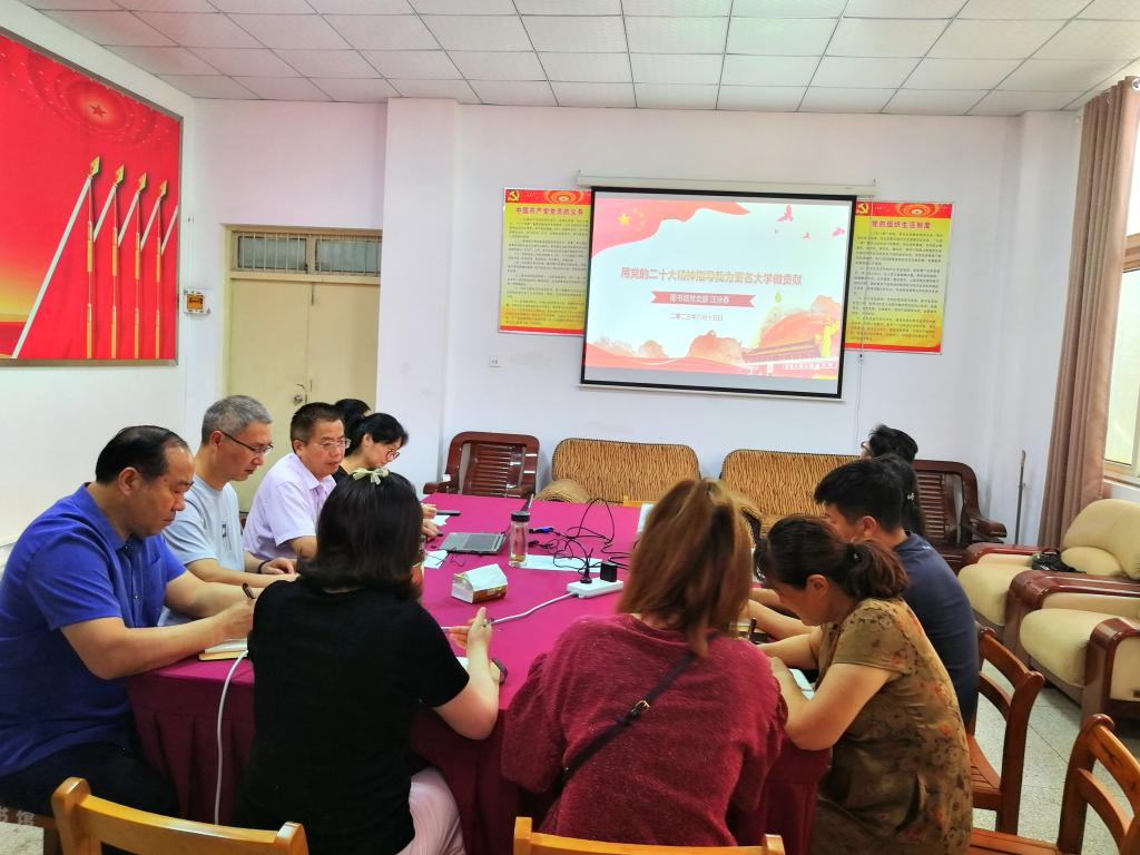 为深入贯彻落实党的二十大精神,推进学习贯彻习近平新时代中国特色社会主义思想主题教育走深走实,6月15日下午,图书馆党支部书记汪徐春为全体党员讲授了题为“用党的二十大精神指导我为更名大学作贡献”主题教育专题党课。