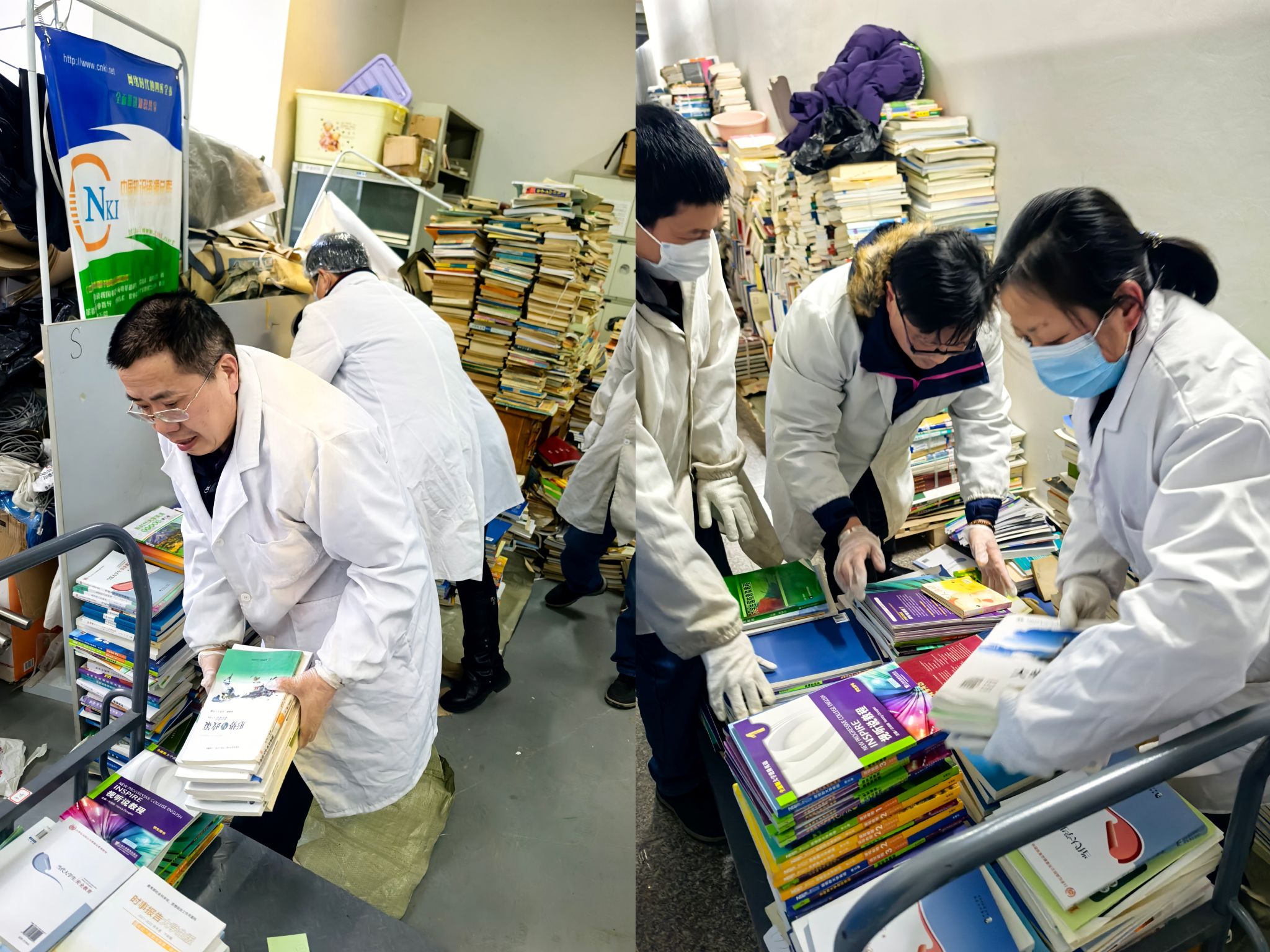 会议结束后,党员们迅速投入到图书分拣整理工作中。图书馆密集书库内,党员们分工明确,有的下架搬运,有的分类整理,有的重新摆放,经过大家的不懈努力,书库图书摆放更加整齐有序,方便了师生查找借阅。