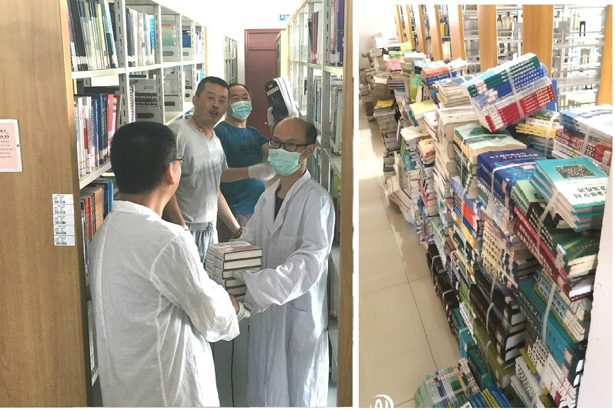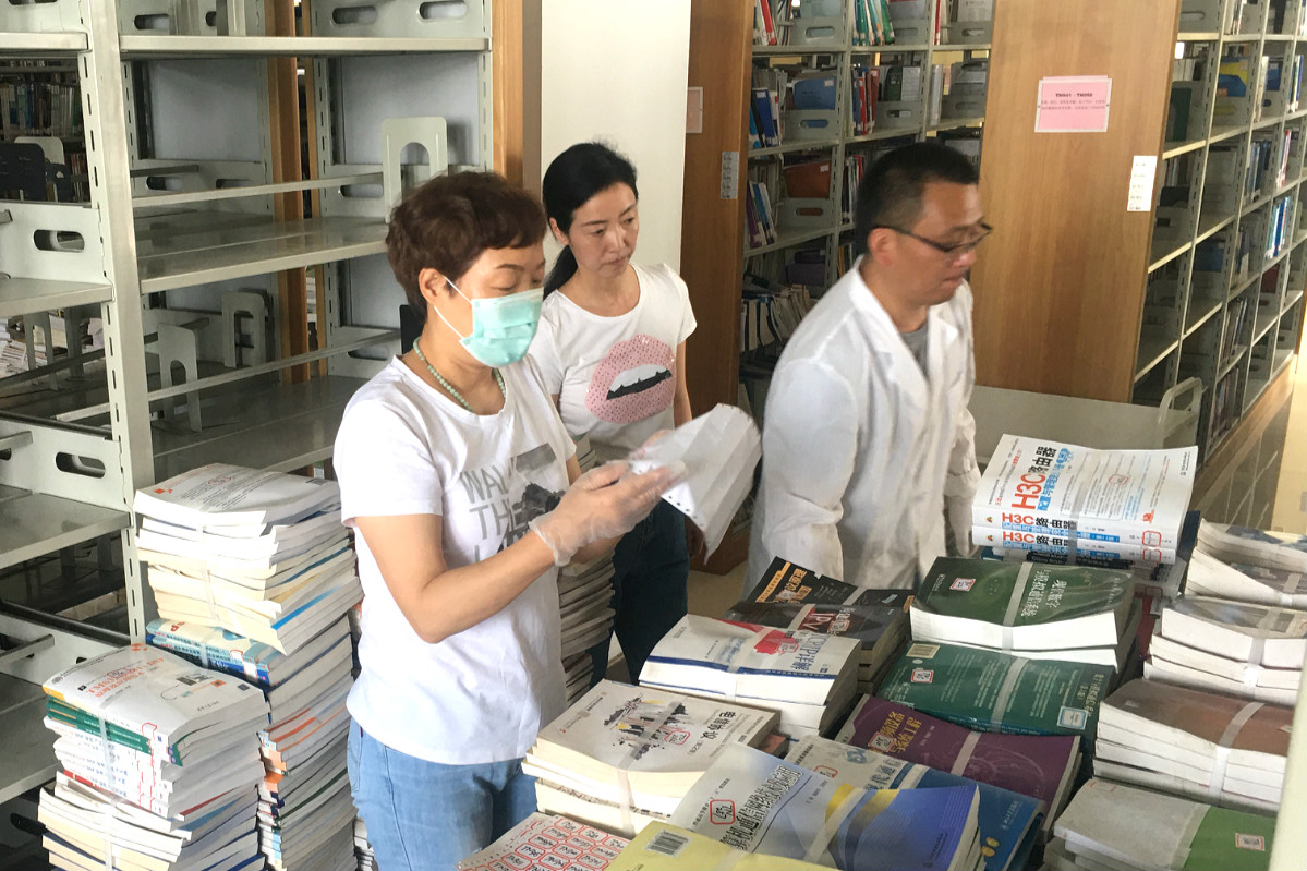 5月26日起, 在保证各书库对外服务工作正常开展的情况下,图书馆以流通部员工为主,同时抽调部分男员工组成工作队,开展图书馆A楼各书库图书下架打捆工作。