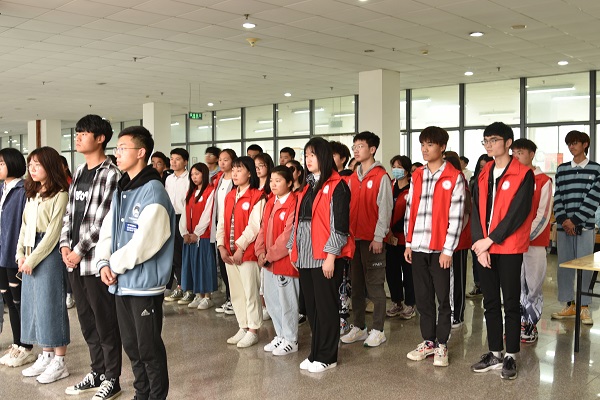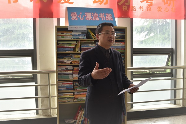 4月24日上午,图书馆联合校爱心社在凤阳校区图书馆2楼休闲平台共同开展了以“以书承爱,助力考研”为主旨的“2021年爱心漂流书架”活动启动仪式。