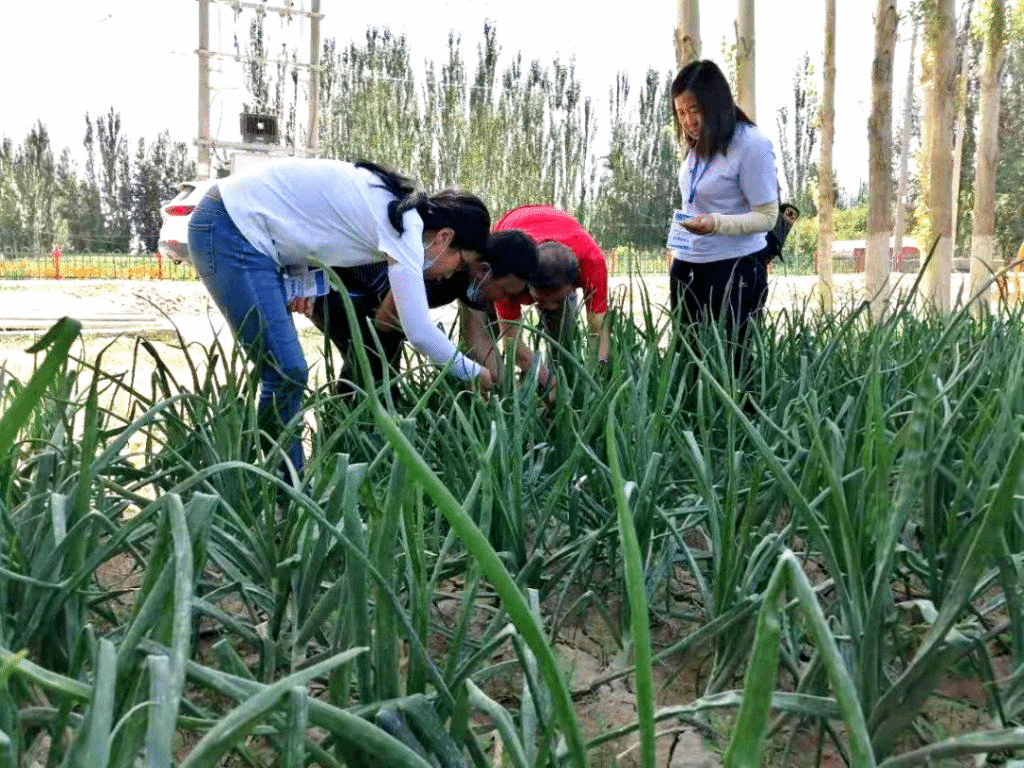 在策勒县恰哈乡为洋葱田间