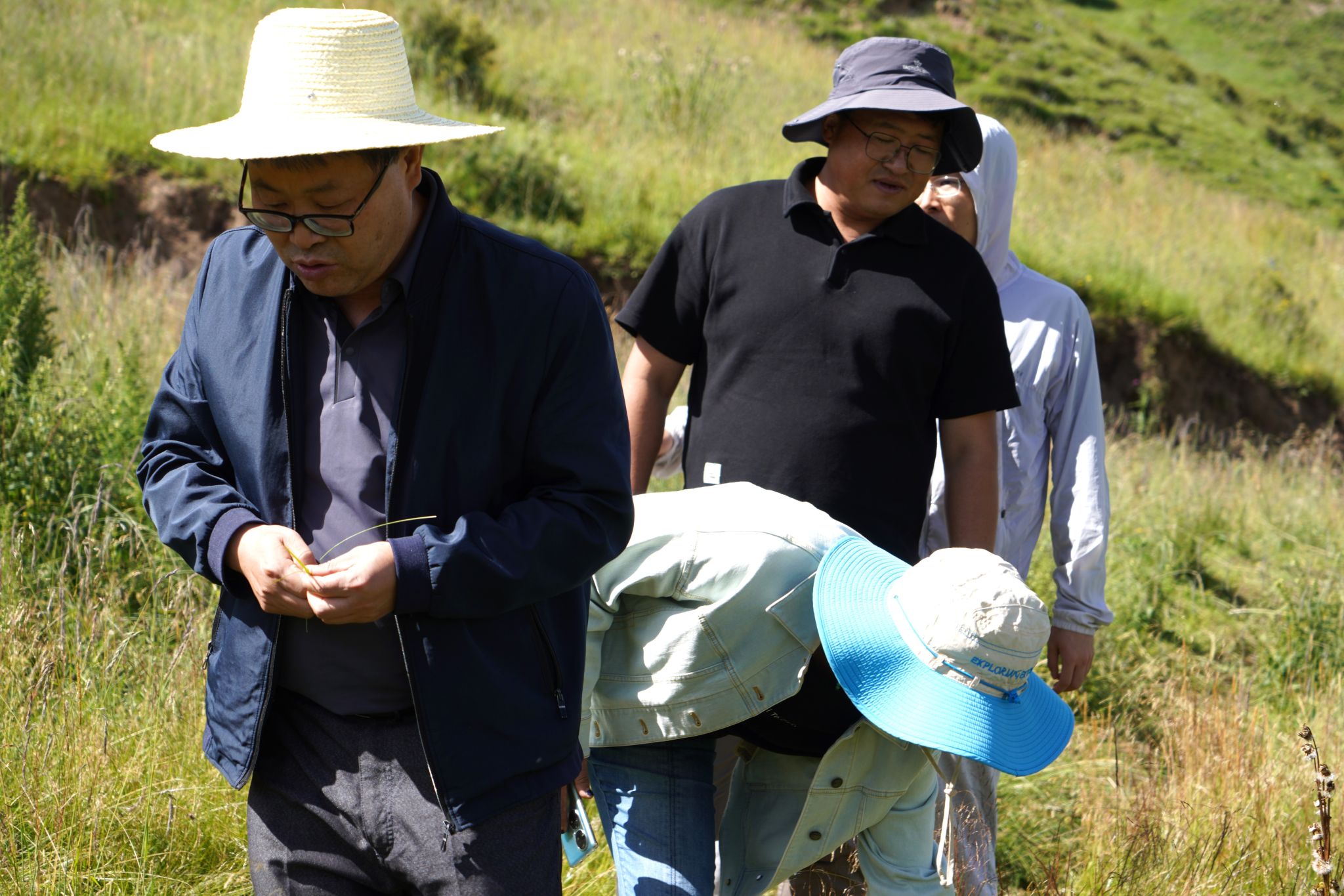 王靖雷(左三)陪同专家组考察草场恢复情况