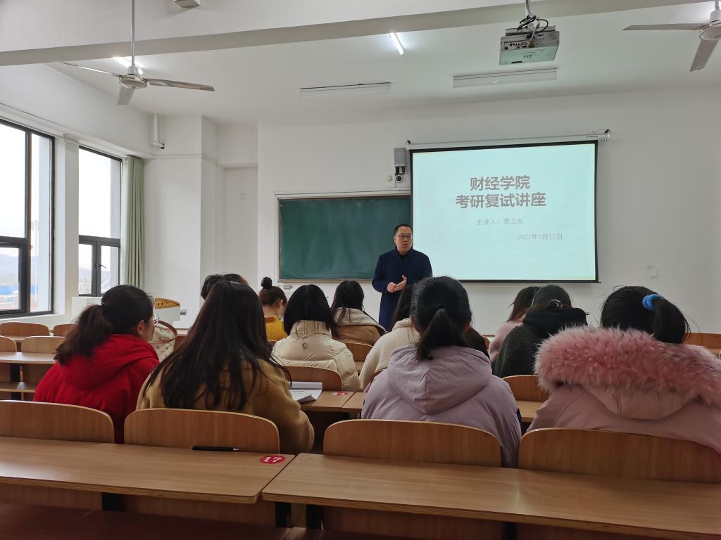 为指导考研达线学生做好复试准备,财经学院于3月17日在致知楼C309教室举办考研复试讲座,贾卫东副教授应邀担任主讲,学院考研达线学生参会。