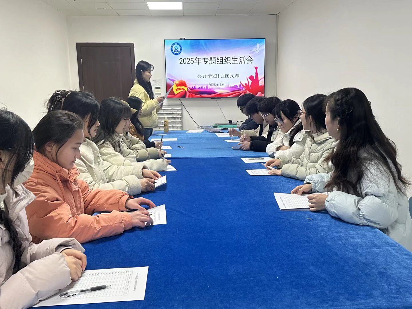 1月4日至12日,财经学院各团支部在学院团委指导下相继开展 2025 年团员组织生活会暨团员教育评议工作。会议由各班级团支部书记主持,全体团员参加。学院团委专兼挂职团干部、团委委员、各班级辅导员到会指导。