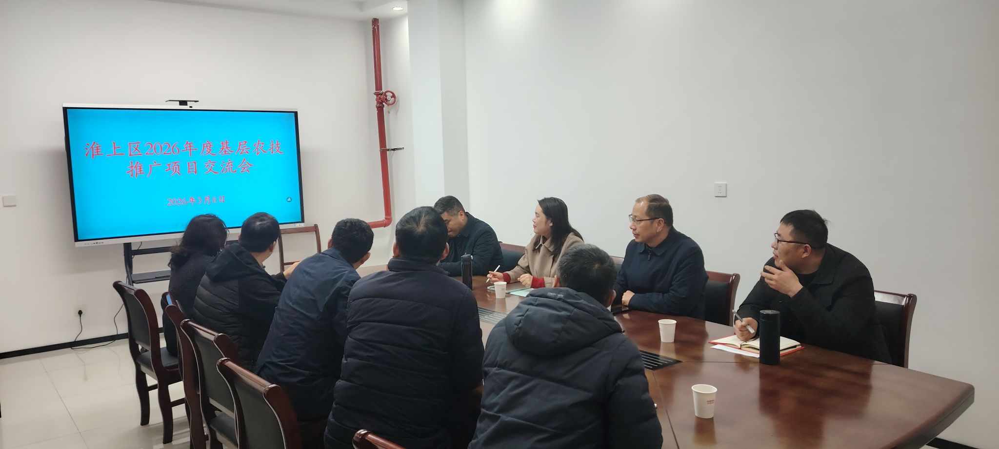 座谈会上,淮上区农业综合服务站领导就2026年度基层农技推广项目的总体目标、重点任务、资金用途及要求进行了介绍,双方就项目规划、推介、部署、实施、验收及总结方面进行了深入交流探讨。座谈会结束后,调研组实地考查了淮上区部分农技推广项目。