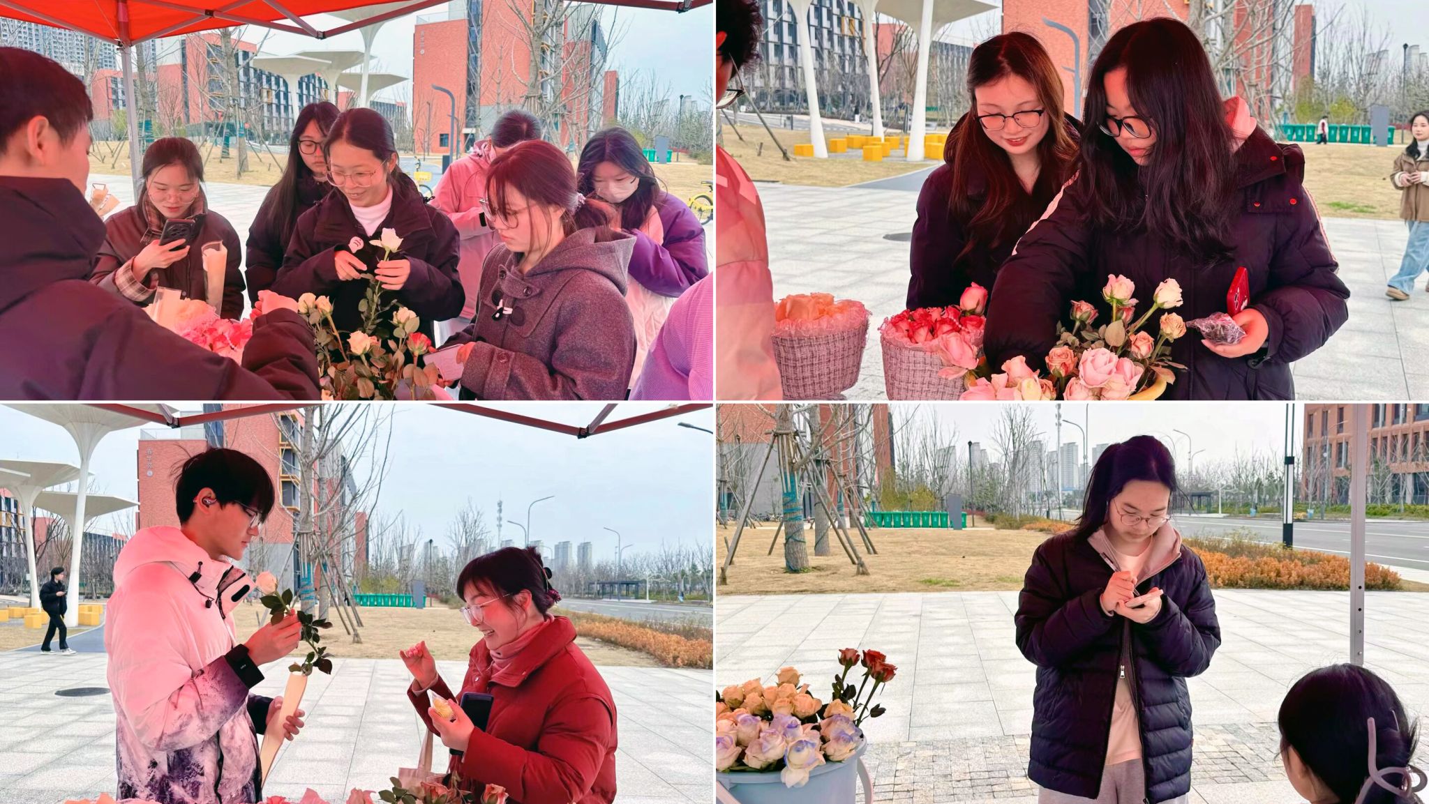 活动现场,节日谜题猜答、暖心纸条留言、互动赠礼三大环节依次展开、热度不减:趣味谜题竞猜环节,同学们踊跃抢答,答对者现场获赠鲜花,花香与笑语交织成春日里温暖的风景;暖心纸条留言区,大家将对学姐的敬意、对同窗的祝福与对未来的憧憬写于纸条,贴满展板,一字一句尽显真挚与温暖;互动赠礼环节中,参与活动可领取精美小礼品,多重惊喜让现场氛围愈发热烈温馨。整个活动内容丰富、形式新颖,既兼顾了趣味性与参与感,又传递了满满的节日暖意,生动体现了“三七”温暖有爱的节日氛围。