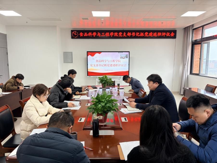 3月18日下午,食品科学与工程学院党委在学院会议室召开2025年度基层党支部书记抓党建述职评议考核会。学院党政领导、党委委员、各党支部书记、党支部委员及师生代表参加会议。会议由学院党委书记余德锋主持。