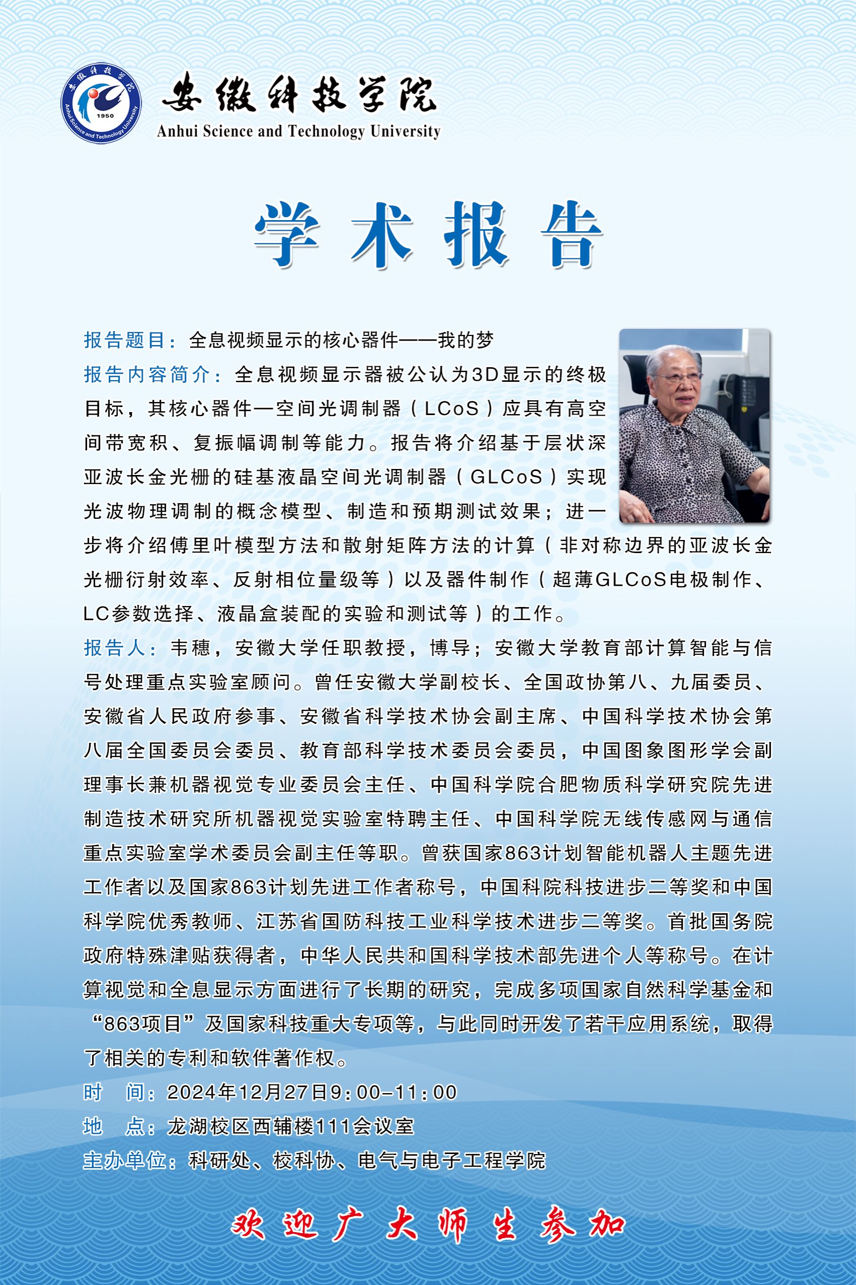 【日期:2024年12月26日】 【单位:科研处、校科协、电气与电子工程学院】 【作者:钱晶晶】